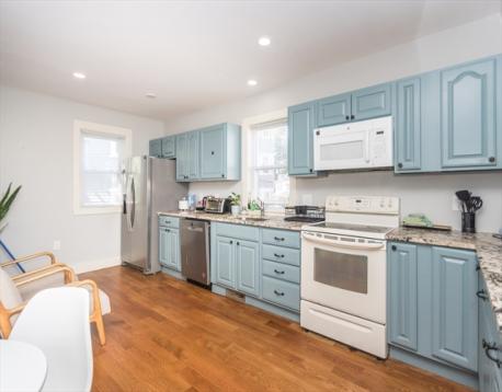 HIGHLY DESIRABLE SOUTH SIDE LOCALE ONE BLOCK FROM POPULAR MOODY STREET! PRISTINE FULLY RENOVATED turn-key two family home featuring large eat in kitchens w/stone tops, 8 to 10 spacious bedrooms, 5 remodeled full bathrooms, hardwood flooring throughout, natural gas heating, central air, relaxing front and rear porches/ balconies and much more! No work needed on this gem. Walk to restaurants, shops and public transportation! Quick access to Rte 128, Rte 2 and Mass Pike! A real find!