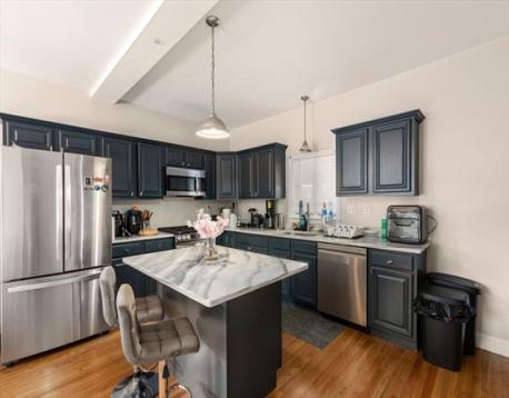 Prime two-family development opportunity with architectural plans in hand to create two 4-bedroom townhouses. Property is currently configured as 2 townhouse-style units, both renovated with high ceilings in the last few years, offering immediate income while planning redevelopment. Front townhouse features 3 bedrooms, 1 full bath, & an office/study with an open-concept kitchen, living / dining area, large bar-style island, quartz countertops, 1 bedroom on the first floor, & 2 additional bedrooms, office, & laundry on the second floor, serviced by gas heat and central air. Rear townhouse offers 1 bedroom, 1 bath, open floor plan with quartz kitchen, full bath & laundry on the main level, second-floor bedroom, with a flexible lower level suitable for office / additional living space. Flat landscaped backyard gardens, two-car garage plus 4+ off-street parking spaces. Ideal for builders, investors, or owner-occupants seeking - turnkey asset with clear redevelopment upside. Near Moody Str.