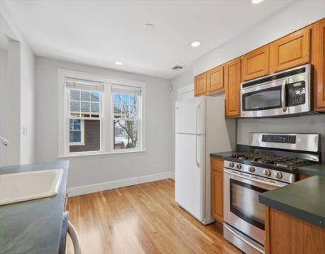 Rare opportunity to own a well-maintained two-family in Waltham offering flexibility for investors or owner-occupants looking to live in one unit while generating rental income from the other. Both units showcase hardwood flooring, spacious living and dining areas, and abundant natural light. The first unit offers comfortable single-level living with 2 bedrooms and 1 full bath. The second unit spans two levels with 2 bedrooms and 2 full baths, highlighted by an expansive upper-level great room ideal as a third bedroom, playroom, or additional living space. Recent improvements include refinished floors, new carpeting, and interior paint, creating a bright, move-in-ready feel. A renovated bath enhances the second unit, and both units feature in-unit laundry. Outside, enjoy a fenced backyard, private rear porch for the second unit, and paved driveway with ample off-street parking. Situated in the Fitzgerald School District- check all Waltham offers including State of the Art High School!