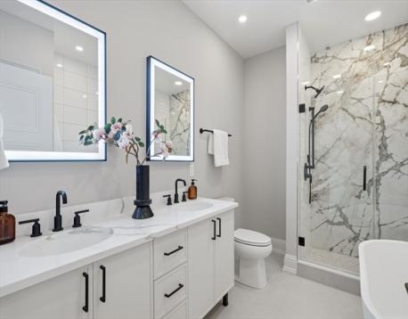 Introducing The Corinthian, Waltham’s newest luxury residence. Once St. Charles Borromeo Church, this beautifully restored 1915 landmark now offers 20 boutique condos defined by refined modern finishes and thoughtfully crafted layouts. Unit 1—our last remaining three-bedroom home—features three bedrooms, two bathrooms, a versatile den, and a rare exclusive private patio and yard space. The neutral-toned kitchen showcases a Fisher & Paykel appliance package, custom cabinetry by Metropolitan Cabinets, and Pental Quartz Lux Aurum countertops and island, creating a warm yet sophisticated aesthetic. Building amenities include a Butterfly intercom system, elevator, fully equipped fitness room, shared outdoor patio, and more. Ideally situated just steps from lively Moody Street, residents enjoy easy access to charming restaurants, unique shops, and scenic parks. Now 70% reserved—don’t miss this limited opportunity to own in one of Waltham’s most iconic transformations!