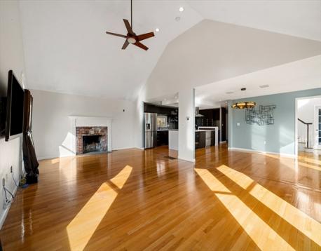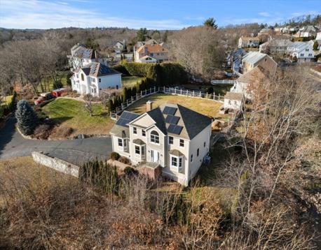 Beautiful Colonial in Coveted Pigeon Hill Estates! Perched high in one of Waltham’s most desirable neighborhoods, this sun-filled Colonial offers an inviting open floor plan ideal for modern living. The open foyer leads to an updated kitchen with dining area that flows into the cathedral-ceiling family room with a fireplace—perfect for entertaining or everyday comfort. A private first-floor office, half bath and laundry room complete the main level. Upstairs features three spacious bedrooms, including a large primary suite with a luxurious en-suite bath and California-style walk-in closets, plus a main hall bath. The finished lower level offers bonus space with direct access to the two-car garage. Additional highlights include a 2016 roof, owned solar panels, and a Tesla whole-home battery backup for outstanding energy efficiency and backup power. Enjoy the expansive backyard with a large patio and sweeping views of Boston.