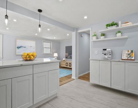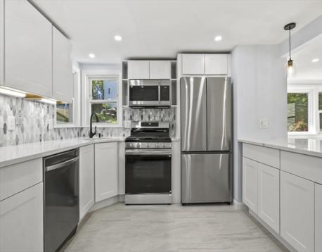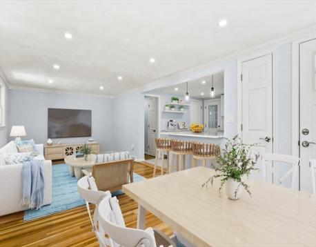 This thoughtfully updated ranch blends style, comfort, and convenience on a quiet dead-end in North Waltham. Sun-filled living room with picture window flows to the dining area and a sleek kitchen with quartz counters, under-cabinet lighting, touch-to-open cabinetry, and smart, fingerprint-resistant appliances, plus a cozy breakfast nook. Year-round comfort with central air, new electrical & plumbing, and recessed lighting. Two bedrooms and a tiled full bath complete the main level. The finished lower level adds a family room, office/flex space, a new second full bath, and laundry. Outside, a new composite deck and low-maintenance yard invite easy entertaining. Walkable to the neighborhood school, playground, basketball courts, and local favorite Pizzi Farm. Super convenient to Rt 128/95 and minutes to shops, dining, parks, and transit. Enjoy bustling Waltham’s recreation, splash pads, and new universal playground. Make your appointment today!