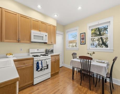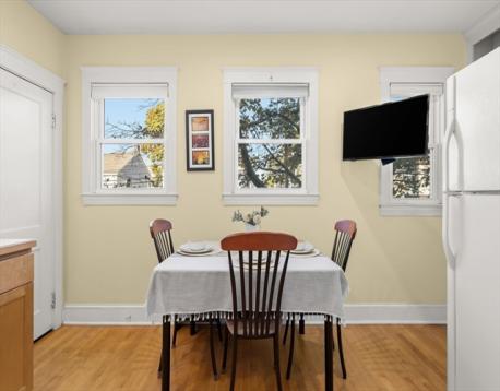 Discover this bright and charming 2-bedroom, 1-bath first-floor condo, ideally situated near East Watertown’s vibrant restaurants and shops, Arsenal Yards, and the Watertown–Cambridge Greenway bike trail. This inviting home features a sunny living room that flows seamlessly into a dining room adorned with a built-in hutch and gleaming hardwood floors. The spacious kitchen includes newly built-in shelving for added storage, while the entire condo showcases high ceilings, beautiful woodwork, and timeless elegance. High-end Hubbardton Forge lighting fixtures add a sophisticated touch throughout, and the enclosed, exclusive-use front porch provides versatile space, perfect as a mudroom. Laundry in the basement plus an additional storage area and off-street parking complete this thoughtfully designed home. Just minutes from Cambridge and Boston, this condo combines classic charm with modern convenience in a vibrant, commuter-friendly neighborhood.