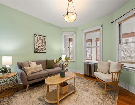 Bright and inviting 2-bedroom, 1-bath first-floor condo ideally located in East Watertown near vibrant restaurants, shops, Arsenal Yards, and the Watertown–Cambridge Greenway. This charming home features a sun-filled living room that flows into a dining room with a built-in hutch and gleaming hardwood floors, along with a spacious kitchen offering built-in shelving for added storage. High ceilings, beautiful woodwork, and elegant Hubbardton Forge lighting enhance the home’s timeless appeal. An enclosed, exclusive-use front porch provides versatile space, perfect as a mudroom or additional sitting area. Additional highlights include basement laundry, dedicated storage, and off-street parking. Convenient to Cambridge and Boston, this home offers a perfect blend of character, comfort, and location.