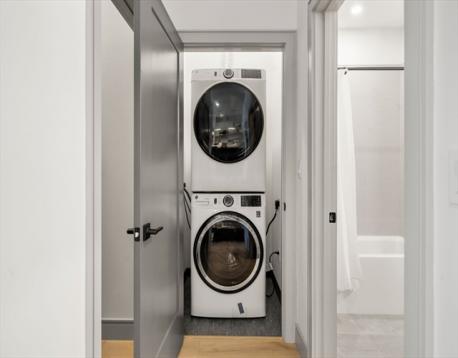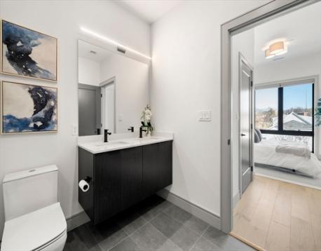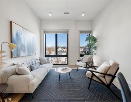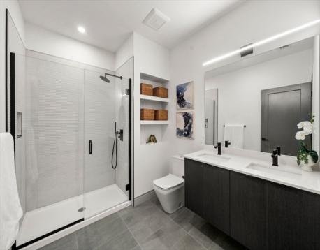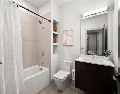 Welcome to this penthouse residence at The Beacon. Thoughtfully laid out for both comfort and functionality, the home features an open-concept kitchen, dining, and living area that flows seamlessly together. Expansive windows flood the space with natural light, creating an airy and inviting atmosphere. The two bedrooms are generously sized and positioned on opposite sides of the condo for added privacy. The primary suite offers a spa-like en-suite bath complete with a walk-in glass shower and double vanity. The second bedroom easily accommodates a queen-sized bed and includes a spacious closet. A full guest bathroom is conveniently located off the hallway. To top off this home, one parking space is included and two guest parking spaces. Residents of The Beacon enjoy an impressive lineup of amenities, including a common rooftop deck, a fitness center, touchless entry, a stylish lounge, and dedicated WFH spaces.