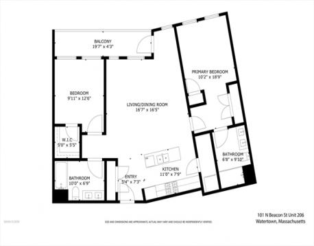 Welcome to The Beacon! This modern 2-bedroom, 2-bath condo offers 1,085 sq. ft. of luxurious living in a premier Watertown location. This stunning home features soaring ceilings, floor-to-ceiling windows with an open floor plan living area that flows into a chef's kitchen with quartz countertops, Bosch stainless steel appliances and a sleek center island. A private balcony extends the living space, perfect for a morning coffee or a chance to unwind in the evening. The primary suite includes 2 closets and a spa-like bath w/ double sinks. There is a second bedroom with a walk-in closet and also a full bath with double vanities and a soaking tub. Additional perks include: in-unit laundry, central air, a designated storage unit and 2 parking spaces. Amenities include a resident lounge, indoor fitness center, individual work pods and a rooftop terrace with panoramic city views. Close to Arsenal Yards, restaurants, shops and commuter routes. This home is a must-see!