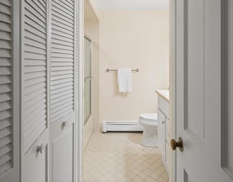 Ideally located just minutes from Watertown Square, the Charles River trails, Arsenal Yards, and public transportation, this sun-filled 2-bedroom, 2-bathroom condominium offers effortless one-level living and is move-in ready.The open-concept living and dining area is both comfortable and functional, with a sliding door leading to your private balcony—perfect for morning coffee or quiet relaxation. The renovated kitchen showcases new flooring, quartz countertops, and updated appliances.The generous primary bedroom includes a custom closet and en suite bathroom. The second bedroom is spacious, also featuring a custom closet, and is ideal for a guest room or home office. Additional highlights include a deeded garage parking space, guest parking, private storage, an elevator, and access to a beautifully maintained common yard.