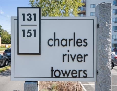 RARELY AVAILABLE 2-bedroom, 2-bathroom residence on the first floor of Charles River Towers, one of Watertown's premier condominium buildings. This unit features an open floor plan with a spacious living/dining area ideal for entertaining, newer updated kitchen with eat-in space, hardwood floors in living areas and bedrooms. The primary bedroom offers a walk-in closet and en-suite bathroom with a walk-in shower. One deeded garage parking space included in the sale. Building amenities include nicely appointed lobbies, common room for functions/meetings, laundry facilities on each floor, well-maintained outdoor pool, landscaped grounds, and on-site professional management. Outstanding location on the Watertown/Cambridge line with easy access to Memorial Drive, Storrow Drive, Harvard Square, Brighton, and downtown Boston. Just moments from the exciting Arsenal Yards development with restaurants, shopping, and more!