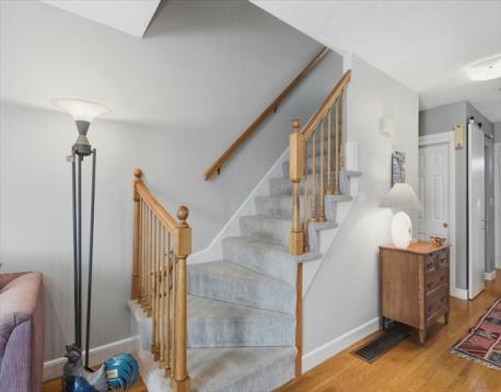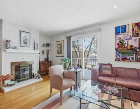 Here is your chance to own in one of Watertown's prime locations. You will be amazed by the move-in perfection in this stunning townhouse. The open first floor flows seamlessly from dining to living, anchored by a working fireplace that turns ordinary evenings into occasions. The eat-in kitchen’s bay window allows an abundance of light while crafted style sets the tone for the entire home. Upstairs, the primary bedroom offers unusual bounty—generous closets, a built-in office, and an en-suite bath. A second bedroom and full bath complete the picture. The under-unit garage means you'll never shovel your car out again, while ample guest parking means hosting is effortless. Summer brings the beautiful common green directly in front—your outdoor living room. As a middle unit with an energy-efficient heat pump, you'll stay comfortable year-round. These rarely surface—claim it before someone else does. Showings begin tomorrow, Thursday at 1PM.