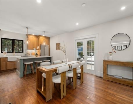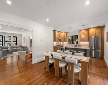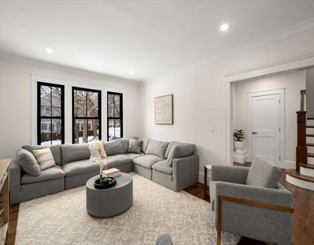 High-end 2025-renovated Dutch Colonial in East Watertown, moments from the new 2026 Watertown High School. Elegant home blends refined updates with retained old-world charm, featuring original hardwood floors. Elegant foyer offers built-in cubbies & classic brick flooring. 4 bdrms on the 2nd floor & 3.5 baths, including a primary suite with private bath & walk-in closet. Striking central brick fireplace anchors the main living space. Kitchen is appointed with quartz countertops, oak cabinetry, & stainless steel appliances, flowing to a large sunroom off the dining room. Double doors open to an expansive wood deck overlooking an exceptionally private rear gardens with beautiful stone walls & brick patio. Side entrance lower level includes a comfortable family room & full bath. New HVAC system. Detached garage converted to a heated versatile studio, office, or yoga space. Short distance to Watertown Square and Arsenal Yard. 4 parking. Perfect for entertaining or relaxing family living.