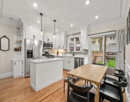 Stunning 3-bedroom, 2-bath condo ideally located where Watertown meets Belmont and Waltham. This multi-level home lives like a single-family, featuring an open floor plan, exclusive use driveway, and a large fenced-in private yard. Renovated w/ charm and character in 2018, offering a bright living room w/ sightlines to the dining area into the yard via a glass slider. The white kitchen has an island and is open to the dining space. The smooth flow of the main level and easy connection to the outdoor areas make this home perfect for living/entertaining. 2 bedrooms and a full bath conveniently located on the 1st floor. The bright lower level offers an expansive family room, ideal for recreation/additional living space. The primary suite is also located on this level and includes a full bath w/ a tiled shower and glass enclosure. Exclusive-use areas include a charming front porch, covered back porch, and a private fenced-in yard w/ patio. Minutes to commuter rail, shops, Cambridge/Boston.