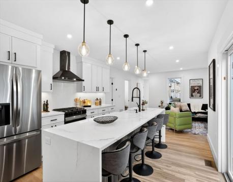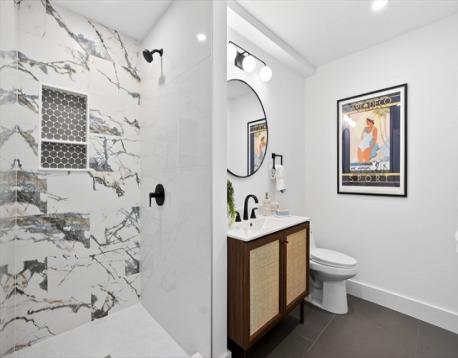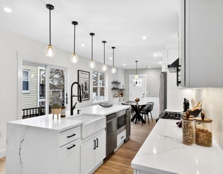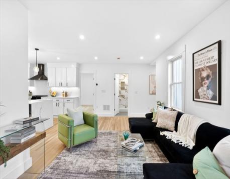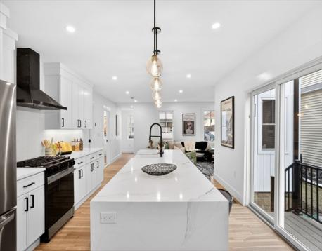 East Watertown, unbeatable location on the Cambridge side. Beautifully renovated condo near Arsenal Yards combining thoughtful design, modern comfort, new systems, and refined finishes throughout. Designed by A1RE, an award-winning company. This unit occupies the first floor and lower level and features an open-concept layout with a bright living room, dining area, and kitchen. The kitchen island faces sliding doors that open to a private patio, creating a seamless indoor–outdoor connection and exclusive outdoor space for this unit. The main level includes a primary bedroom with double-sink ensuite bath, a second bedroom, and an additional full bathroom. The finished lower level offers two additional bedrooms, a full bathroom, laundry area, and dedicated storage. ERV (Energy Recovery Ventilation) system installed. TV/Data outlets wired throughout.