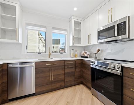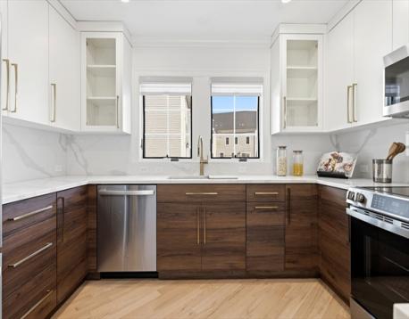 Introducing 3 Chatham Way at Nally Estates—featuring a newly renovated custom-designed interior by Barqawi Design. Every detail has been thoughtfully curated, from the brand-new kitchen & bathroom cabinetry by European Designs, to the premium plumbing fixtures and designer tiles. The main level features an open floor plan connecting the kitchen, dining & living areas. A sliding glass door provides direct access to your outdoor patio. The eat-in kitchen, complete with bar seating & GE stainless-steel appliances, balances sophistication with everyday functionality. A half bathroom completes this main level. Upstairs, in-unit laundry. Two spacious bedrooms each feature en-suite bathrooms. The top floor includes a third bedroom and a separate Den—ideal for a home office. Enjoy the convenience of 3 parking spaces with direct access from inside your home to the heated, attached garage finished w/epoxy floor.