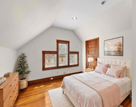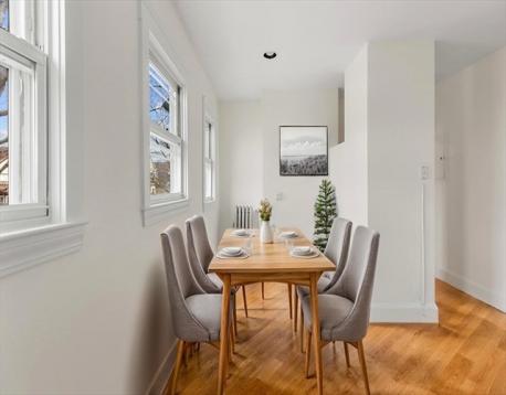 Spacious Top Floor Two level 4 Bedroom 2 full bath condo located in a top East End location near the Cambridge line. Traditional floor plan with bright & sunny living room, formal dining room, refurbished kitchen with separate eat-in area. Two good-sized bedrooms on main level and full bath. Bonus room perfect for home office. Front porch has been converted into a nice sunroom with hardwood floor. Top floor offers the large main bedroom with full bath with whirlpool tub, vaulted ceilings and wall a/c. Additional 4th bedroom on top level. Condo has been freshly painted and is in move-in condition. Two car exclusive use garage with one additional off-street space. Private storage and laundry in lower level. Conveniently located in the sought Coolidge Square in the East End just steps to specialty shops, great restaurants, the Deluxe Town Diner, bus line to Harvard Square and just a short walk to the New Arsenal Yards.