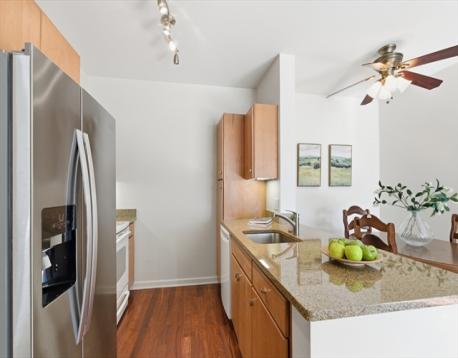 Well established and professionally managed Repton Place, a meticulously maintained modern condominium community close to the city and benefiting from immediate proximity to shops and services, this welcoming 2-bedroom, 2-bath residence offers sweeping views attributable to the elevated corner location. Exclusive-use deck. Convenience, luxury, and the space to work comfortably from home are enhanced by tasteful upgrades throughout. The generous primary bedroom with a walk-in closet. 2nd bedroom accommodates a queen bed or makes a deluxe home office/guest room. In-unit laundry, excellent storage space in the unit, and separate, secure storage down the hall. Exclusive-use garage space accessible via the elevator and a 2nd parking space just outside. Easy guest parking. Gym and saltwater pool available. Nearby Arsenal Yards, an exciting entertainment/retail/restaurant destination.