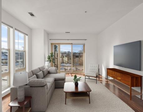 Rarely available, this spacious, bright corner unit offers a large 2-bedroom, 2-bathroom floor plan. Exposures to the east and south maximize natural lighting, and sliders open to a balcony off the living room. The foyer leads to an open floor plan, perfect for both entertaining and comfortable family living. The kitchen features granite countertops, stainless steel appliances, wood cabinets, and a pantry. There is a separate dining area, and a large living room. The primary bedroom features dual closets, and the second bedroom has a walk-in closet. Great closet space throughout, and a good-sized laundry room. Additional storage. Two garage parking spaces. Other amenities include fitness center, pool, function room, and park-like grounds. This complex is near Watertown's shops and restaurants, and has easy access to the Charles River walking path, bus to Harvard Sq., commuter routes, and downtown Boston. A must see!