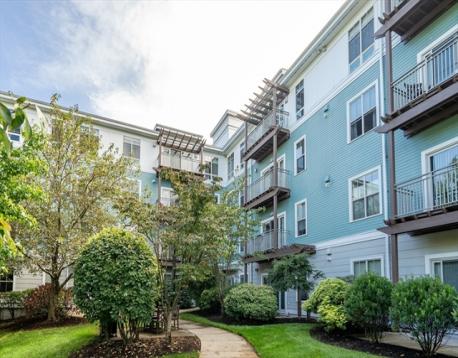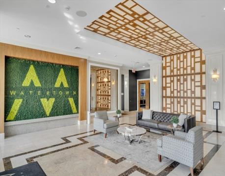 Experience penthouse living at the popular Repton Circle! Elegant 2 bedroom and 2 bathroom unit with 2 deeded garage parkings. Open-plan living room with 9.5ft ceiling height, floor-to-ceiling windows & gleaming hardwood floor. Gourmet kitchen with maple cabinetry, granite countertop & SS appliances. Stepping out to the balcony overlooking the resort style landscaped courtyard. Primary suite and second bedroom both with bright large windows, tile surround tub/shower. In-unit laundry & extra storage. Luxury amenities: pool, fitness center, BBQ, playground, pet run, bike storage, guest parking and pet friendly policy. Prime location walk to Charles River Greenway bike path all the way to Cambridge, Stop & Shop conveniently located across the street, bus to Harvard Sq. and easy drive to Boston. Enjoy Watertown's vibrant art, shopping and restaurant at Arsenal Yard and recreation center at Arsenal Park!!