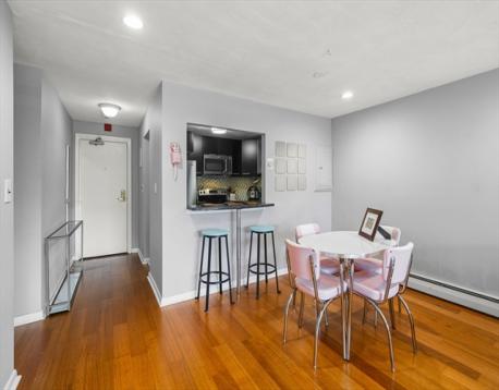 Welcome to this inviting 4th-floor residence at Hamilton Place in the heart of Watertown Center, offering comfort and convenience in a professionally managed community with landscaped grounds, laundry, clubhouse, and fitness center. This sun-filled, south-facing 2 bed, 2 bath unit is just moments from Main St’s shops, dining, and parks. The updated kitchen features sleek cabinetry, stainless steel appliances, and quartz countertops, opening to a bright living area with hardwood floors and access to a private balcony. The primary suite includes a custom walk-in closet and renovated ensuite bath with modern vanity and ample storage. Additional highlights include a flexible walk-in pantry or office space, plus assigned parking and extra storage. Easy access to Mass Pike, Memorial Dr., and bus routes (#71, #70, #59, #504) completes this well-located home!