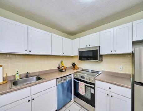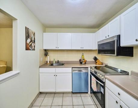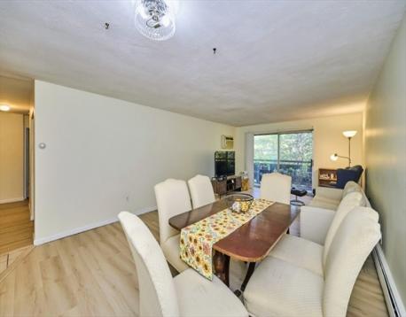 Step into this meticulously maintained, move-in-ready condo where modern living meets incredible convenience. Freshly painted and boasting new luxury vinyl plank flooring throughout, this home offers a crisp, clean feel from the moment you arrive. The kitchen has been upgraded with white shaker cabinets and new stainless steel appliances, featuring a convenient pass-through that opens to the dining area, perfect for entertaining. The primary bedroom is a true retreat with a large walk-in closet and a private en-suite bathroom. From your private balcony, enjoy serene, tree-lined views of the walking path—a peaceful escape right at your doorstep. The pet-friendly building allows a dog under 25 lbs and offers a great range of building amenities including a fitness room, game room, on-site laundry room, elevator, bicycle storage, and extra storage in the basement. Located just minutes from Watertown Square, the Downtown Express Bus, and the Mass Pike. Call for you private showing today!