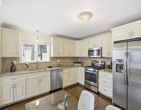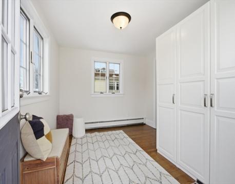 Ideally located near the Charles River Bike Path and Watertown Square, this charming condominium, with its own private entrance was renovated in 2015, and offers a fantastic opportunity for home ownership. Ample sunlight fills this home through its multiple exposures. Features include pocket doors, wood floors, bay windows and a large generous sized bedroom. The large eat-in kitchen offers granite countertops, ample soft close cabinetry & stainless appliances to include a gas stove, microwave and refrigerator. Two bonus rooms offer great flexibility that could serve as a home office or exercise room. A ceramic tiled bathroom with a granite top vanity plus in-unit laundry and ample basement storage makes this unit turn-key. Freshly painted interiors, an exclusive use fenced-in front yard and off-street parking space completes this wonderful home. Public transportation options include express buses to Boston, Cambridge and Waltham, plus easy access to the Mass Turnpike and Route 128.