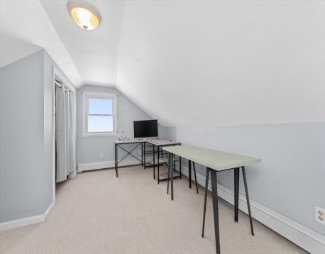 Refreshed and well-maintained 3-level townhouse—a private retreat with a deck, fenced backyard, and multiple bonus areas for today’s lifestyle. Hardwood floors run throughout the main level, featuring a sunlit living room and an eat-in kitchen, with French doors that provide flexible flow and privacy. The kitchen offers a granite island, stainless steel appliances, and gas cooking. Upstairs, you’ll find two spacious bedrooms and a full bath with radiant heated flooring. The finished top floor with two large closets is ideal for a home office, play area, or bonus room. The basement provides additional storage, flexible use, and in-unit laundry. Step outside to enjoy the deck and fenced backyard—your own private outdoor setting for relaxing, gardening, or everyday enjoyment. Enjoy a peaceful, tree-lined neighborhood near parks and playgrounds, with quick access to Route 20, Route 16, I-90, and easy connections to I-95.
