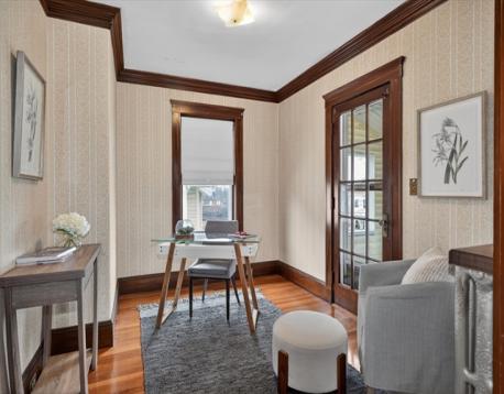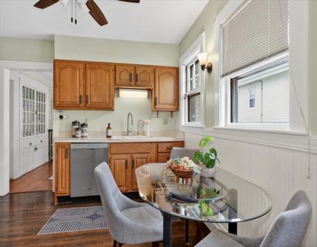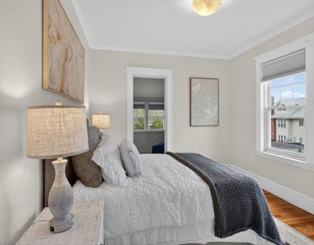 Spacious 1,694 sq ft two-story condominium offering classic charm and comfortable urban living. Features include natural woodwork, beamed ceilings, fireplace, wainscoting, and hardwood floors throughout. Large eat-in kitchen and inviting front porch. Located on the second floor, this home offers 3 bedrooms and 1 full bath, with expansion potential on the upper level. Conveniently situated on the Belmont line with 3-car parking, including a garage space, and easy access to public transportation, Harvard Square, Boston express bus, and commuter rail.