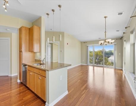 This is the one you have been waiting for! Move right into this young, pristine corner penthouse! Enjoy privacy & spectacular sunsets in the sun splashed great room w/ a wall of windows and southern exposure. 2 garage spots! High ceilings, private deck, beautiful rosewood floors & high-end finishes. Gourmet granite/stainless kitchen w/island, maple cabinets & pull-out shelves. 2 full tile bathrooms w/stone vanities plus a walk-in shower. Central AC & utility room w/front-loading washer/drier. Custom built closets, 2 private storage units & guest parking. Meticulously maintained! Access to 24/7 fitness center, yoga studio, club room, and salt water pool*, inviting outdoor spaces with grills, bike storage, steps to the Charles River bike path! Onsite management & high owner occupancy. Best commuter location near great restaurants, shopping, highways (MA Pike/90/93/128/95), Cambridge, Boston & MBTA, plus downtown express & Kenmore/Harvard/Central bus. Steps to Stop & Shop. Pet friendly.
