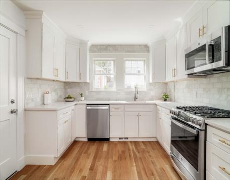Welcome to 652 Belmont Street, Unit 1, a beautifully reimagined 3-bed, 2-bath condo where classic New England charm meets a sophisticated modern refresh. Stunning coffered ceilings, rich oak hardwood floors, and a wood-burning fireplace set the tone, while a brand new eat-in kitchen impresses with GE stainless appliances, white shaker cabinetry with gold hardware, and marble subway tile. Both bathrooms are brand new, including a serene primary suite with a private en-suite and walk-in shower. Original wainscoting, crown molding, and ceiling medallions have been lovingly preserved, proof this home was reimagined, not reinvented. Step out to your private patio, perfect for morning coffee or evening unwinding. Two tandem parking spots, exclusive basement storage, and in-unit laundry complete the package. Perched on the Belmont-Watertown line, Arsenal Yards, MBTA bus service to Cambridge and Boston, and the best of Greater Boston living are right at your doorstep.