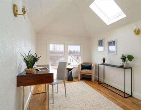 Welcome to 652 Belmont Street, Unit 2, a beautifully reimagined multi-level condo offering two floors of spacious living where classic New England charm meets a sophisticated modern refresh. Rich oak hardwood floors and sun-drenched living spaces set the tone, while a brand new eat-in kitchen impresses with dual-tone cabinetry with gold hardware, marble subway tile, and a charming pantry. Both bathrooms are brand new, including a primary suite with a private en-suite. Three outdoor spaces make this home truly special: a covered deck off the kitchen, a balcony off the living room, and an exclusive paver patio. Upstairs, a vaulted bonus room and flexible sitting area offer endless possibilities. A private side street entrance adds everyday convenience. Two tandem parking spots, exclusive storage, and in-unit laundry complete the package. Perched on the Belmont-Watertown line, Arsenal Yards, MBTA bus access, and the best of Greater Boston living are right at your doorstep.