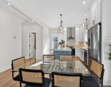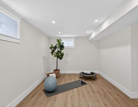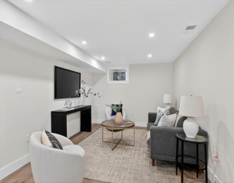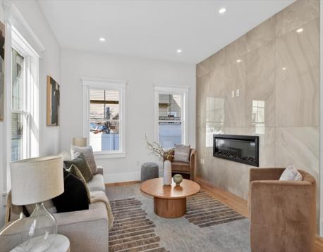 Luxurious, gut renovated two-family condominium nestled on a small terrace. This unit offers a modern, spacious layout with well-distributed living spaces. The 1st floor features two bright bedrooms with large closets, a full bath, inviting living room includes a beautiful electric fireplace and flows seamlessly into the dining area and open-concept kitchen with gorgeous counters, ample cabinetry, island and a layout designed for everyday practicality. The 2nd floor offers a third bedroom with a closet, ideal as a home office or additional bedroom. The lower level includes a generous family room, a full bath, and storage and a laundry area. The unit also features a private outdoor patio, perfect for relaxing or entertaining. Central air completes the package for this amazing home! Conveniently located with easy access to the Mass Pike (I-90), close to the Charles River, public transportation (including the express bus to Boston!), shops, dining, and everyday conveniences.