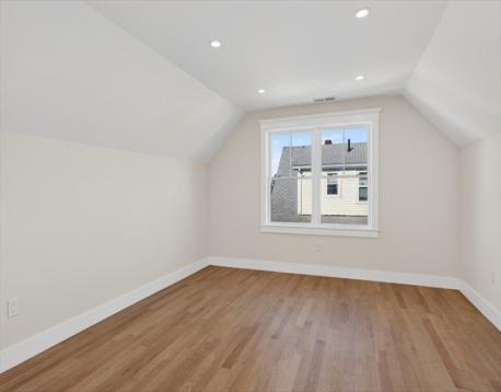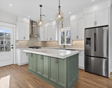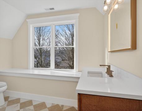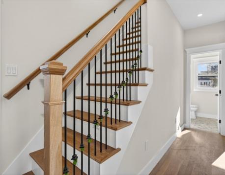 Luxurious, gut renovated two-family condominium located on a small terrace. This unit offers a modern layout with flexible living spaces. The second floor features a beautiful primary suite with large closet and a beautiful tiled bath with walk-in shower, sunlit living room with an electric fireplace, seamlessly integrated dining area and kitchen, creating a warm and open atmosphere. The spacious kitchen offers an impressive amount of cabinetry for storage and organization, beautiful countertops along with a large island that enhances interaction and functionality. The third floor includes two bright bedrooms, both with large closets, as well as a full bath and a laundry area. This is an excellent use of space, perfect for those seeking a modern home combined with old world charm in a convenient location. Ideally located with easy access to the Mass Pike (I-90), close to the Charles River and its scenic trails, as well as public transp. (Express bus to Boston!) and shopping.