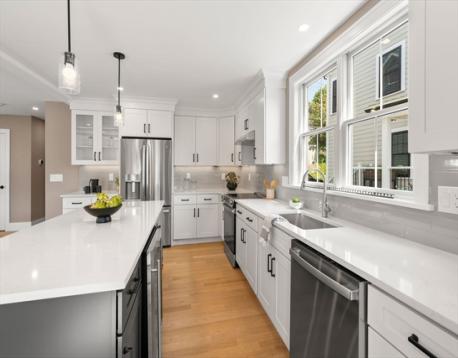 A must see property in the heart of Watertown's redevelopment zone, walking distance to Watertown Sq, city amenities and public transportation! Easy access to Route 2, I90 & Storrow Dr. The formal living room comes complete with an abundance of windows, hardwood floors and recessed lighting. Open concept living carries into the kitchen/dining areas and entire first floor. Kitchen boast semi custom cabinet & quartz counters with an oversized island / professional series GE stainless appliance package. Second floor unfolds into 2 bedrooms with many windows & convenient laundry with a family tiled bath and on suite bath. Third floor offers a spectacular oversized primary bedroom suite. Amazing finished lower level with plenty of family bonus space or 4th bedroom. Great storage, fenced yard & garage parking finish it all off. Close to all new schools, Harvard Bus, shopping and restaurants. Don't miss an opportunity to break into the fast growing Watertown market!