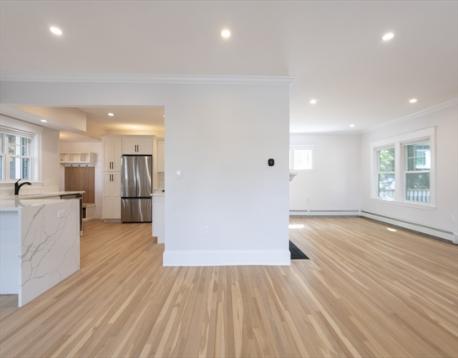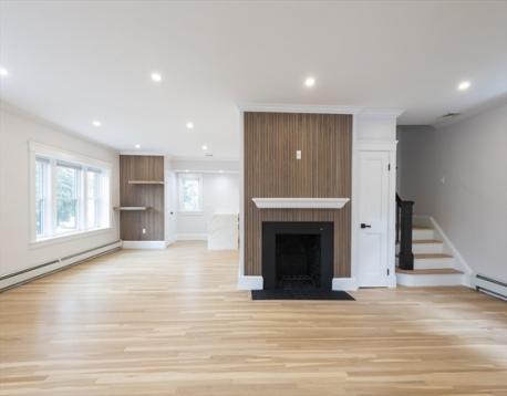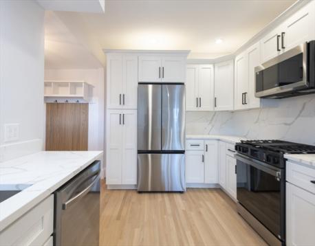Welcome to your dream home! Gorgeous, fully renovated Colonial on a corner lot in the desirable Oakley Country Club area. With 4 bedrooms, 2.5 baths, this home is bright, spacious, and move-in ready. Experience open concept living that features a cozy fireplace and stunning hardwood floors throughout. The kitchen boasts gorgeous quartz waterfall countertops and stainless-steel appliances. The second floor includes three bright bedrooms, a bathroom and a full laundry room with ample storage. The top floor offers a spacious bedroom and an elegant bathroom. The backyard showcases a patio, raised garden bed, fresh landscaping and a fenced-in yard, perfect for both relaxation and entertaining. Basement provides ideal space for storage, and the freshly paved driveway has two spaces plus additional street parking. Enjoy an unbeatable location in a quiet neighborhood close to schools, shopping and dining with easy access to Boston, Cambridge, highways, and public transportation.
