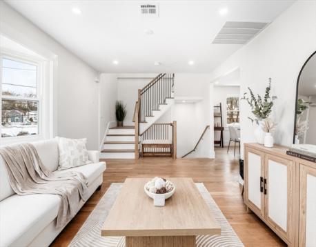 Mint renovated Top floor Condo on two levels. This spectacular 3 bed 3 bath unit has been tastefully updated with white shaker kitchen with quartz Counters and Cafe appliances. Main level consists of Living room, dining area, Kitchen with center island, one of the two primary suites as well as another bedroom. Third floor boasts a gorgeous Second primary suite with additional room for home office or dressing area. All new utilities, siding, windows and more. Close to Lowell school, parks, bus lines and Major routes. Great Value do not miss out!