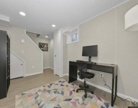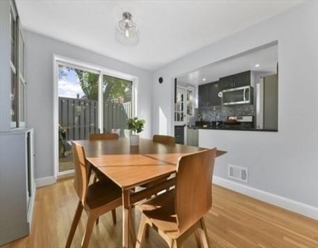 Stunning Corner Townhouse in Watertown’s “The Village”. Bright, beautifully updated, and move-in ready, this desirable corner townhouse offers the perfect blend of style and functionality. The first floor features an open-concept living space with three walls of windows, gleaming oak floors, and recessed lighting that create a warm, inviting atmosphere. The dining area opens through sliding glass doors to a private, enclosed deck, perfect for morning coffee or entertaining guests. The modern kitchen boasts quartz countertops and stainless steel appliances, ideal for cooking and hosting. Upstairs, you’ll find two spacious bedrooms with oak floors and a full, windowed bathroom featuring tile floors and a tiled tub-shower combination. Partially finished basement adds versatile space for a home office, gym, or media room, with additional unfinished areas for laundry, storage, and utilities. Enjoy the perks of a professionally managed community, including a clubhouse and pool.