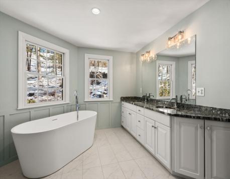 This spectacular 5-bedroom Colonial is set back on a beautifully landscaped .72-acre lot in Cliff Estates. Complete gut renovation in 2023 opened up Kit, DR & breakfast rm to create stunning open kit, complete w/oversized 12x5 Calacatta Vagli marble island plus Wolf range, Subzero refrigerator, lrg pantry & coffee bar, & spacious dining area. Oversized LR w/fireplace & incredible natural light. FR w/ built-ins & sunroom/office w/serene yard views complete the 1st floor. Luxurious master suite w/ lrg walkin closet/dressing area & fully renovated bathroom, featuring walk-in shower & spa-like tub. 4 additional BRs of similar size on the 2nd flr, including separate guest ste w/priv staircase & full bath. LL playroom + exercise area & full bath. Private patio & thoughtfully-designed landscaping filled w/native perennials, adding vibrant color to the property in 3 seasons. Perfect combination of excellent layout, short distance to Bates Elementary & one of Wellesley's favorite neighborhoods.