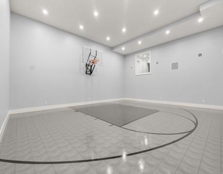 Beautiful home with 1/2 court basketball in the lower level!! Over 9200 sq ft of living space on 4 floors w/ one acre of land. Enter into a stunning 3 story foyer w/ white oak herringbone floors and over 10 foot ceilings. Incredible kitchen with oversized island opens into great room (1200 sq ft) with fireplace and filled with windows! Oversized mudroom & walk-in food pantry. Private library/office with gas fireplace and built-ins complete the first floor. An incredible master suite with fabulous walk-in closet and spa-like marble bath. All bedrooms en-suite w/ walk-in closets. 3rd floor with 5th bedroom. Lower level in addition to basketball court has theatre/media room with wet bar plus a gym or extra space for guests/au pair. Featuring the finest custom craftsmanship throughout, professionally engineered mechanical systems, smart house & professionally designed ultra high end finishes. Extra large entertaining patio & fire pit. Close to Wellesley Center & town trails!