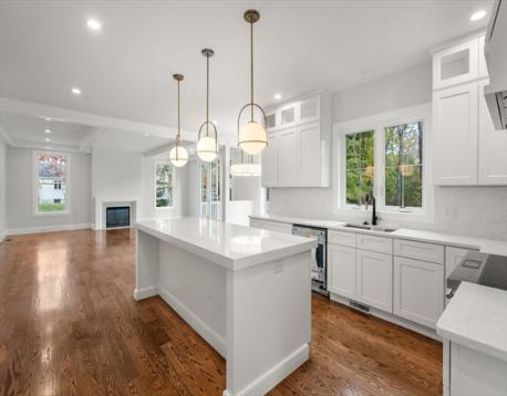 New home in Cliff Estates with the ideal floor plan and one of Wellesley's favorite designers creating the perfect interior! Gracious foyer with large kitchen family room off of the back of the home. Oversized kitchen island with fireplace in family room. First floor private study. Living room with another fireplace and dining room both with custom millwork. Mudroom with cubbies and closet. Second floor with excellent main suite with sitting area, large walk -in closet and spa-like bath. 3 additional bedrooms with walk-in closets and 2 full baths. Third floor great space with bedroom and full bath plus a bonus room/office. Lower level with 6th bedroom and 5th full bath. Great playroom with beverage bar and lots of storage! Large flat yard with plenty of room for backyard parties along with a fun bridge in back of property. A must see!