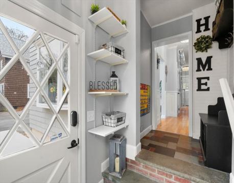 Wonderful opportunity in the heart of the Poet's neighborhood, this expansive Tudor Colonial blends timeless charm with modern comforts. Thoughtfully updated throughout, this home boasts soaring ceilings, spacious rooms and a flexible floor plan. Gracious formal living room with stone fireplace flows through to well appointed dining room. Light and bright eat in kitchen with stainless steel appliances opens to the large level lot perfect for indoor/outdoor entertaining. Family room and wonderful sunroom / play space offer many options for today's living. Upstairs there are four corner bedrooms and renovated full bath. The third floor allows for either two additional family bedrooms or private work from home space. The separate entrance makes it a fantastic space for an in law or au pair suite. Finished lower level with home gym, full bath and ample storage. Prime location near shops, restaurants and easy commuting to Mass Pike and the T. Just Minutes from Warren playground.