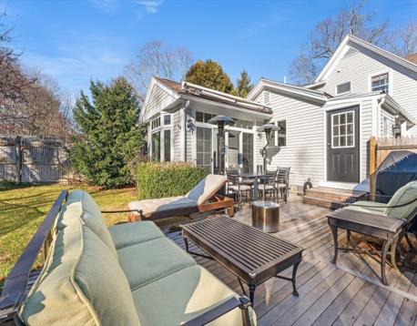 Located in the Dana Hall neighborhood of Wellesley, this expansive 5-bedroom, 4-bath home offers a highly desirable and flexible layout, complemented by a detached guest suite, ideal for extended family, an au pair, or visiting guests. The beautifully updated kitchen features ample storage, quality finishes, and seamless flow to sun-filled living spaces, creating an inviting setting for everyday living and casual gatherings. Generously sized bedrooms and a clean, well-lit basement round out the interior. A sparkling pool anchors warm-weather entertaining, while the expansive deck overlooking the large, flat, fenced-in yard provides generous space for grilling, dining, lounging, and hosting. Mature landscaping enhances privacy and curb appeal, and the location offers close proximity to top-rated schools, shops, commuter routes, and recreation. 29 Cottage Street delivers the complete package—flexible living, beautiful indoor-outdoor spaces, and a layout that supports every stage of life.