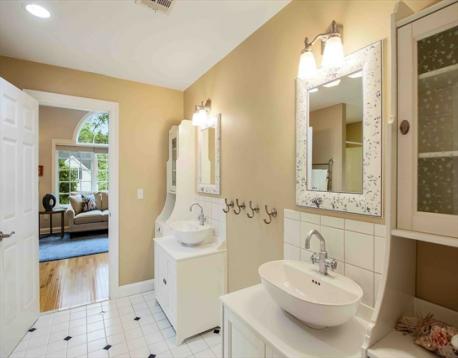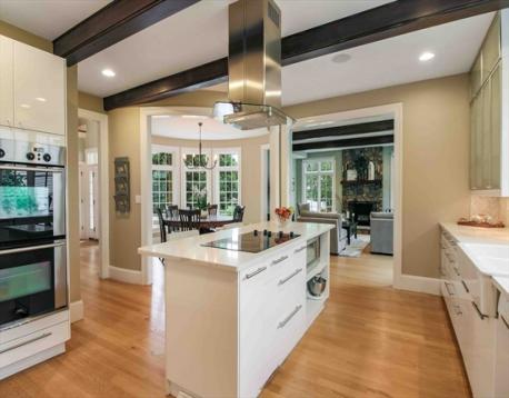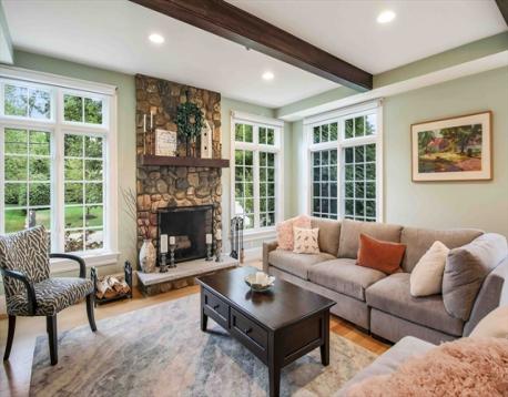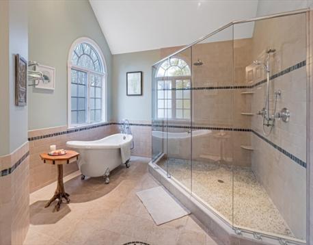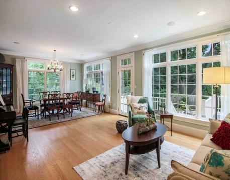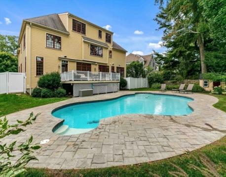 This stunning custom-designed home perfectly balances elegance and everyday comfort. A distinctive stone turret adds architectural charm, creating a unique circular dining room and a cozy retreat in the spacious primary suite. Sunlight floods the home through large windows, enhancing its warm and inviting feel. The private, beautifully landscaped backyard features a heated, saltwater pool - ideal for relaxing and entertaining. Spanning four levels and over 6,000 sqft, the home offers 6 ensuite bedrooms, 4f2h bathrooms - perfect for a large family and hosting guests. The finished basement with a half bath provides flexible space for a gym, media room, and teen hangout. Upkeep is easy with this meticulously maintained home that was constructed with legacy craftsmanship and quality materials, now updated with quartz kitchen counters. It is ideally located just a block from WHS, near WMS, MBTA, Whole Foods, and the scenic Brook Path.