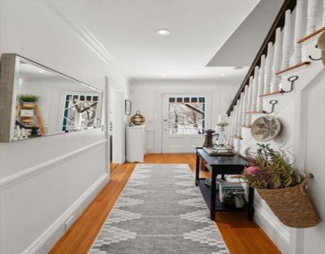 Presenting this extraordinary, beautifully updated 1800s modern farmhouse in highly convenient Wellesley Hills location. Truly unique & rich in character, this home features high ceilings, lovely appointments, & a wonderful sense of connection throughout. A welcoming front porch & foyer open to beautiful living spaces, including a sun-filled family room directly off the kitchen, perfect for everyday living & effortless entertaining. Both The dining & living rooms are enhanced by fireplaces and crown moldings, adding both style & function.The gracious primary suite offers a serene retreat w/ a newer, well-appointed bath. Three additional bedrooms, plus 2nd-floor laundry, provide comfort & convenience.Enjoy relaxed outdoor living on the pretty porches, patio & grounds. A spacious two-car garage includes exceptional bonus living space above, ideal for a home office, studio, playroom, or potential ADU. Rare blend of timeless charm, flexibility & location! A short distance to everything!