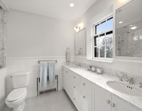 Privately nestled on nearly an acre of land this exceptional Cliff Estates home offers timeless elegance in a stunning and serene setting. Sweeping heated driveway with gorgeous stone walls lead up to beautiful front yard. The gracious two story foyer welcomes you with soaring ceilings, intricate millwork and rich hardwood floors throughout. Sophisticated fireplaced living room and sun splashed dining room exude warmth and charm. Expansive eat in kitchen leads to generous butlers pantry and three season porch. The second floor boasts a lovely primary suite with renovated marble bath and 4 additional family bedrooms. Finished third floor has endless options for home office, bonus playroom or additional bedroom suite. Picturesque grounds and stone patios allow for wonderful outdoor entertaining space. Walk out lower level has an au pair / in law suite with separate entrance and its own garage. Close to the commuter rail and all of Wellesley amenities.
