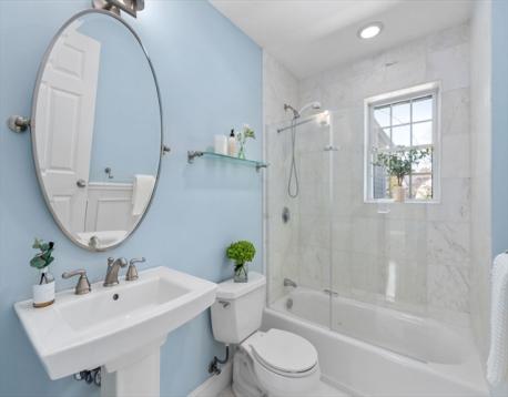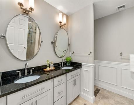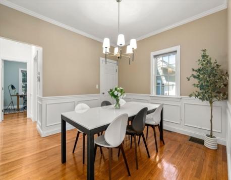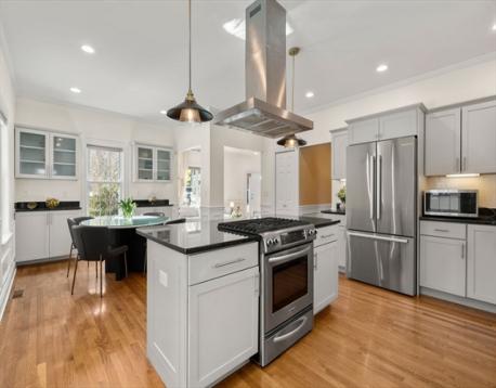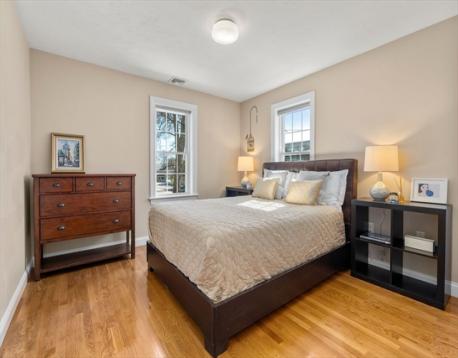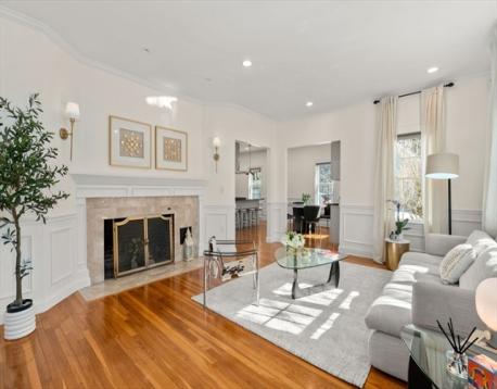 Picture-perfect 10-room Colonial nestled in the heart of town, offering the perfect blend of timeless charm and modern comfort. Thoughtfully renovated and beautifully maintained, this home boasts 6 flexible bedrooms and 3 full baths across two bright levels with hardwood floors and high ceilings. The elegant main level features impressive living and family rooms with 9’ ceilings, tall windows, and a marble fireplace, flowing into a sun-filled breakfast nook and an open kitchen with island, custom cabinets, and granite countertops. A formal dining room and an office/guest room with full bath complete the first floor. Upstairs includes a luxurious primary suite with spa bath and walk-in closet, three generous bedrooms, a full bath, laundry, and a large flex room w/ French doors. Extensively remodeled in 2012 with quality craftsmanship, plus a bonus finished lower-level and an oversized two-car garage. Close to top-rated schools, shopping, parks & more—an expectational place to call home!