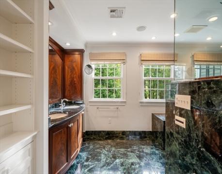 Welcome to 56 Ledgeways! Experience unparalleled luxury in this exceptional Wellesley Farms residence by award-winning architect Jan Gleysteen. Offering three levels of refined living and timeless elegance, this home features a fireplaced living room that opens to a tranquil sunroom, a formal dining area with custom cabinetry, and a light-filled family room adjoining a fireplaced sitting room, ideal for entertaining. The expansive chef’s kitchen showcases a wall of windows overlooking manicured grounds and a bluestone patio with a stonewall and built in grill. The private primary suite offers a sitting area, office, and dressing room. Meticulously renovated with custom millwork, wainscoting, and coffered ceilings, this home also boasts radiant heated floors, a heated driveway, and inviting outdoor spaces. With five additional bedrooms, a wine cellar, media room, and gym, this is a rare opportunity to own a crown jewel in Wellesley’s most coveted neighborhood, Wellesley Farms.