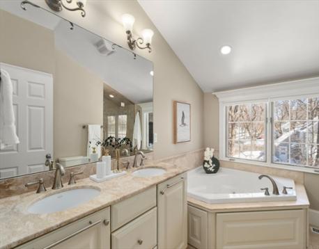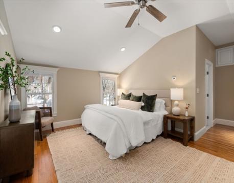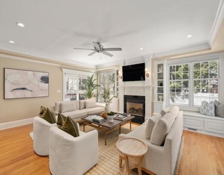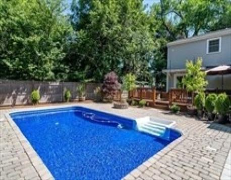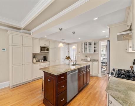 Beautifully expanded Cape set in the highly sought-after Bates neighborhood, offering a perfect blend of comfort and style. The chef’s kitchen opens seamlessly to a spacious family room featuring tray ceilings, custom built-in bookcases, a granite bar with wine refrigerator, and a gas fireplace—ideal for everyday living and entertaining. A sun-filled dining room and inviting living room with wood-burning fireplace provide wonderful gathering spaces. Tucked away on the main level is a private en suite bedroom, perfect for guests or a home office. Upstairs, the spacious primary suite includes a walk-in closet and spa-like bath with whirlpool tub, along with two additional bedrooms, a full bath, and laundry. The finished lower level offers a playroom, second laundry, and abundant storage. Step outside to a deck overlooking the in-ground pool and private backyard—an exceptional retreat for outdoor enjoyment.