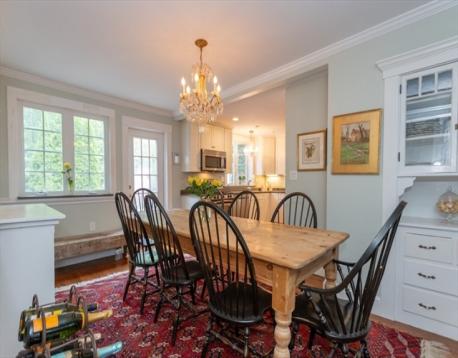 A delightfully charming Cape style home with a versatile floor plan on a large, level yard filled with mature plantings for privacy. The first floor offers an open floor plan with great flow to two separate fireplace living areas as well as a dining room and bedroom/office with hardwood floors throughout. The updated kitchen boasts granite countertops, stainless appliances, ample storage and breakfast bar and opens to a large rear deck, perfect for entertaining. Upstairs offers a large en-suite Primary bedroom, two additional bedrooms, another full bath along with an office/den space. There are plenty of custom built-ins, cabinets and quaint nooks that make this an adorable gem of a home. There is a partially finished basement with walk out & a rear former garage which could be used for additional storage. The acreage is combined lots 6 & 6R and offers a half acre of privacy or possible room to grow. Terrific location, moments to Fiske elementary school & easy access to Rt.9,128, I-90.