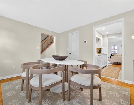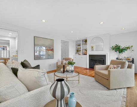 Charming Townhouse in the heart of Wellesley center. This spacious TH offers a thoughtfully designed layout across three levels. The main floor includes a bright sunny living room w/gleaming hardwood floors, cozy fireplace, and built-in bookshelves. A large sliding glass door opens to your private balcony, ideal for morning coffee or evening relaxation. The dining room also boasts hardwood floors & convenient pantry storage, leading to a well-appointed galley kitchen with white cabinetry. Upstairs, you'll find two generously sized bedrooms w/ HW flooring. The primary suite includes a private full bath & 2 double closets. An additional full bath in the hallway houses the in-unit laundry for ultimate convenience. The full basement offers excellent storage space and provides direct access to the garage. Enjoy the best of Wellesley living with nearby commuter rail, shops, restaurants, and more. This is the right size in the right location.