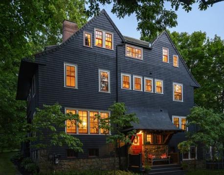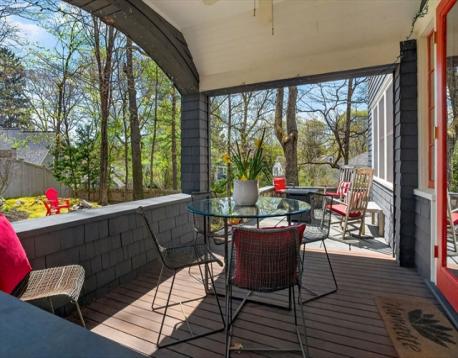 Glorious shingle-style home built by Katherine Lee Bates, author of America the Beautiful, who lived & wrote here, including in the 3rd-floor sanctuary she called “Bohemia.” Set back & framed by mature trees, the home blends historic character w/ thoughtful updates for modern family living & gracious entertaining. Stunning architectural details throughout, incl. a grand foyer, light-filled updated kitchen, rich fir flooring, oversized windows, & porches at every turn. 4 corner BRs, including a primary suite w/ sleeping porch. Breathtaking 3rd-floor retreat offers soaring ceilings, white shiplap paneling, a flood of natural light, along with a coffee bar, ensuite bath, dressing room, and laundry, ideal as a primary suite, inspiring studio, home office, or game room. The lower level includes a finished playroom, storage, & exterior access. Located in the College Heights, close to Wellesley Center, the train, and Sprague School, this is a home of enduring character and quiet distinction.