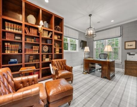 Surrounded by the beauty of Wellesley Farms, this exceptional home offers a rare blend of privacy, tranquility and stunning interior design. Bathed in natural light the front to back foyer welcomes you into this impressive home with high ceilings. Expansive windows frame views of the professionally landscaped grounds bringing the outdoors in & filling every corner with warmth & brightness. The beautifully appointed kitchen flows seamlessly into the inviting family room, offering an open & airy layout where comfort meets effortless style. The elegant living & dining rooms each include a fireplace, custom millwork, and mahogany-inlaid floors. Additional highlights include a gorgeous library with custom built-ins & French doors—perfect for working from home—and a stylish mudroom to keep belongings organized. Every detail of this home has been curated with superb craftsmanship. An idyllic retreat just moments from everything that makes Wellesley so desirable, with easy access into Boston.